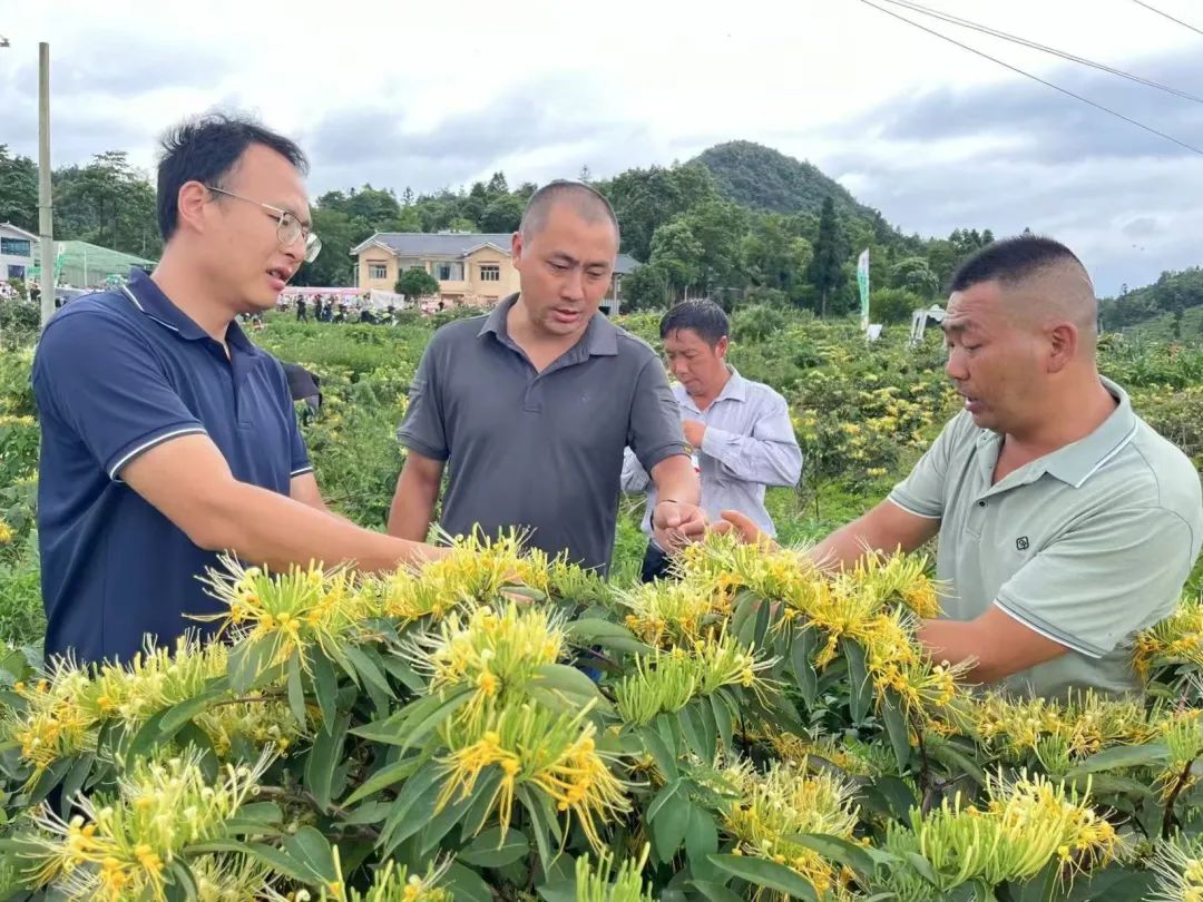 为了敲开村民的心门,白天我跟着村支书走村入户,用脚丈量这片11.2平方公里的土地。深夜伏案整理走访笔记,窗外犬吠虫鸣,纸页上密密麻麻的“家长里短”,成了我最珍贵的驻村地图。为带领村民致富,我们三次“取经”。第一次去绥阳小关乡的盘山路上,我的心里比山路还忐忑——这一趟,真能给咱们村找到出路吗?但当进入小关乡的金银花种植示范园,扑鼻而来的清香瞬间驱散了疲惫。漫山遍野的藤蔓间,金黄与银白交织成海,务工的村民腰间挂着竹篓,指尖翻飞如蝶。合作社负责人陈主任向我们介绍道,“我们这儿以前也穷,可金银花耐旱耐贫瘠,种活了就是‘摇钱树’。”