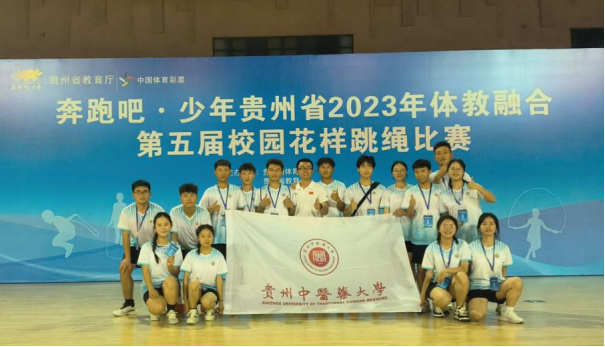 9月21日至24日,由省体育局、省教育厅主办的“奔跑吧·少年”2023年贵州省体教融合第五届校园花样跳绳比赛在遵义市奥体中心体育馆举行。我校组织选拔16名运动员进行艰苦训练并代表学校出征此次比赛,取得较好成绩。