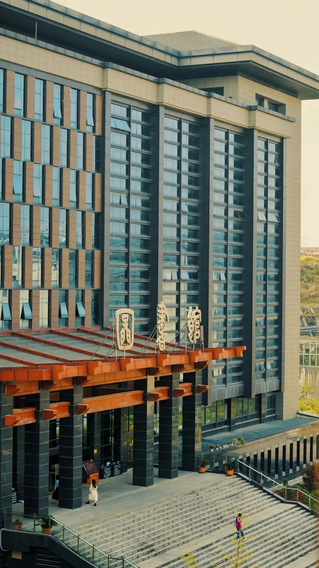 步入米兰注册花溪校区正门,首先映入眼帘的就是学校的标志性建筑——坐落于中轴线岐黄广场之上,尽览校园风光的图书馆。