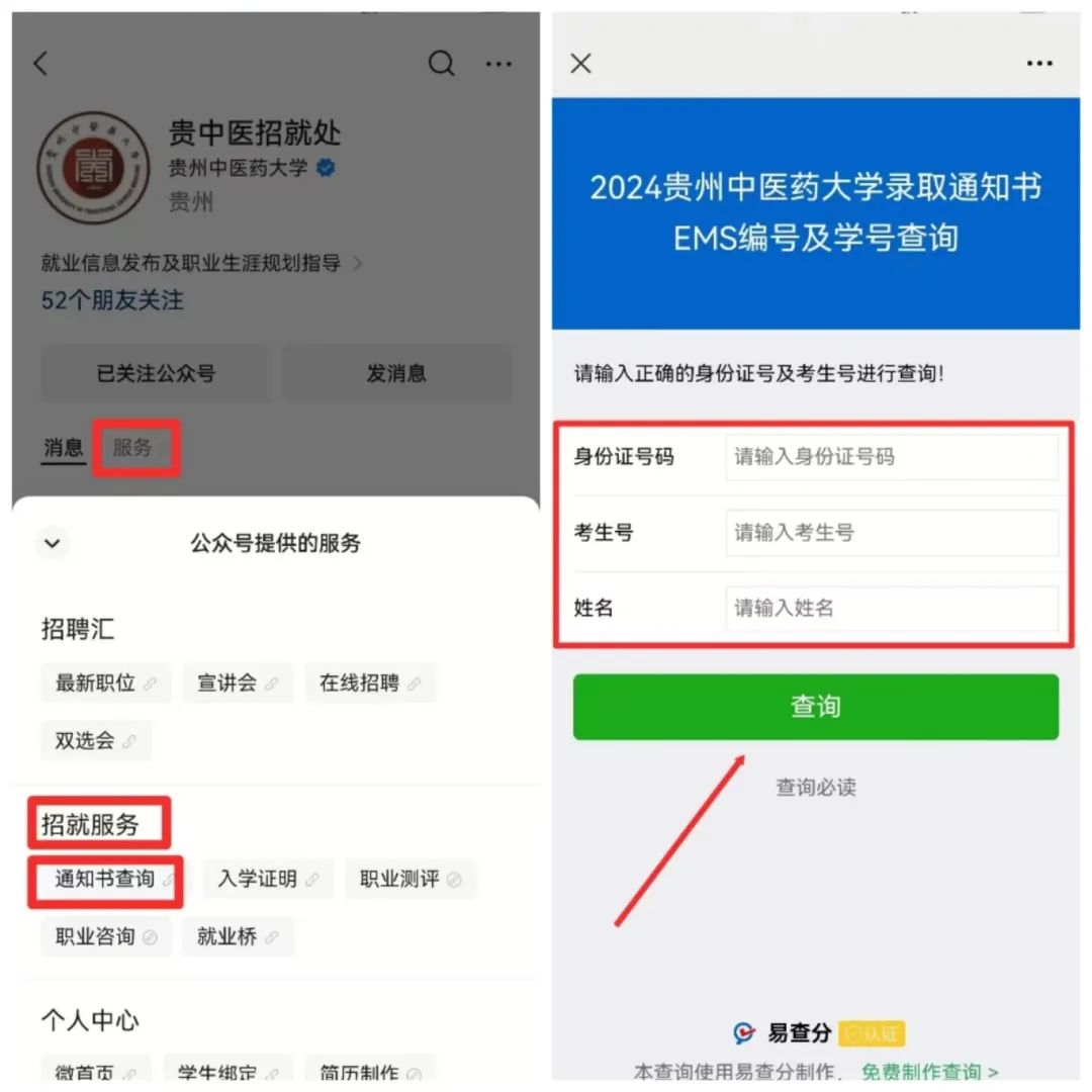 2、点击“服务”在招就服务中选择“通知书查询”。